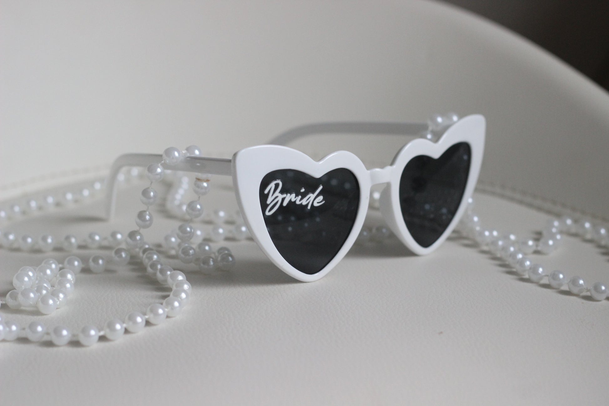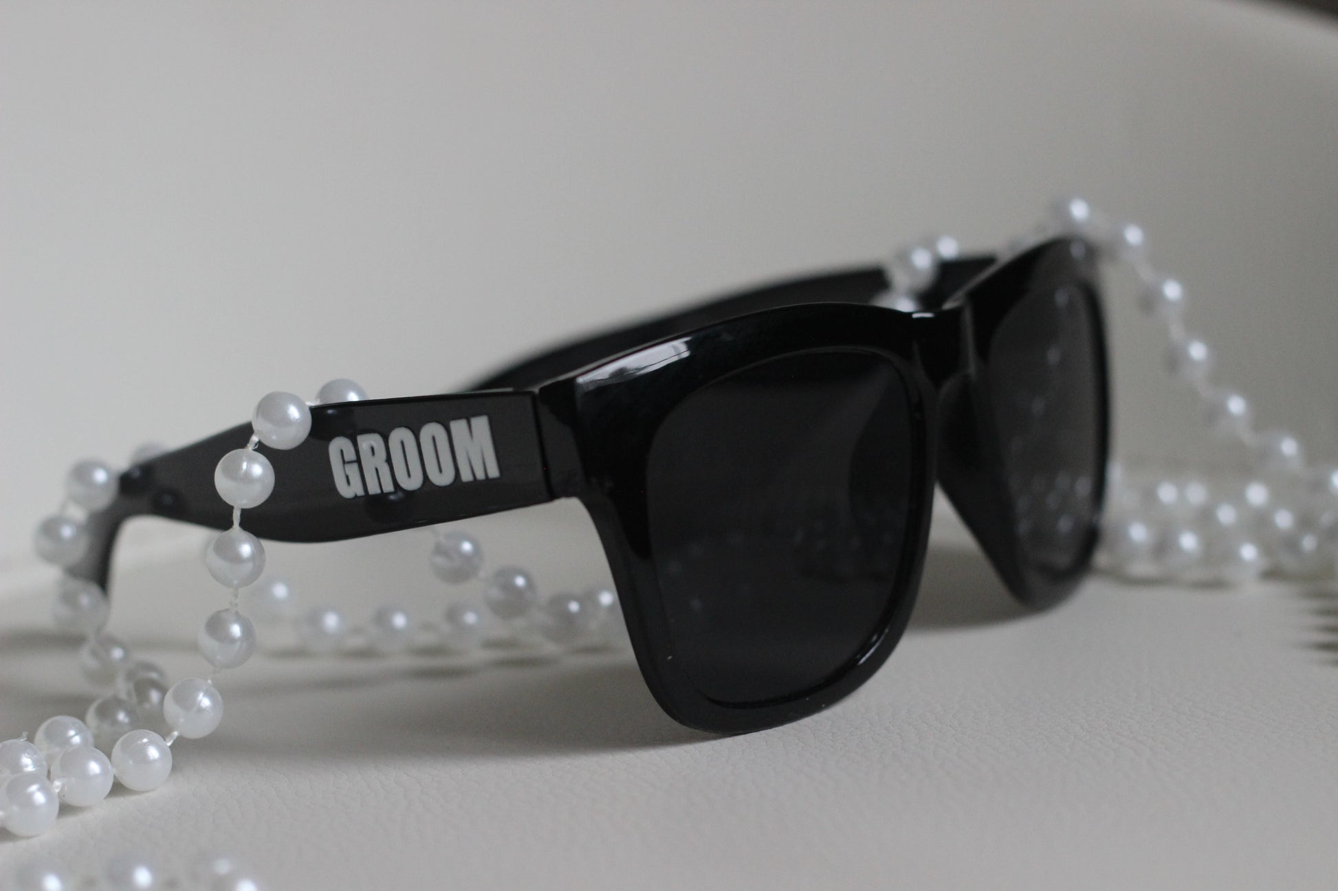 Celebrate your love in style with these matching "Bride" and "Groom" sunglasses, designed for the couple who loves to make a statement! Featuring beautiful lettering on the lenses, these chic and playful shades are perfect for bachelorette parties, rehearsal dinners, wedding day photos, and the honeymoon. With a comfortable fit and sleek design, these sunglasses add a fun yet sophisticated touch to your special moments.